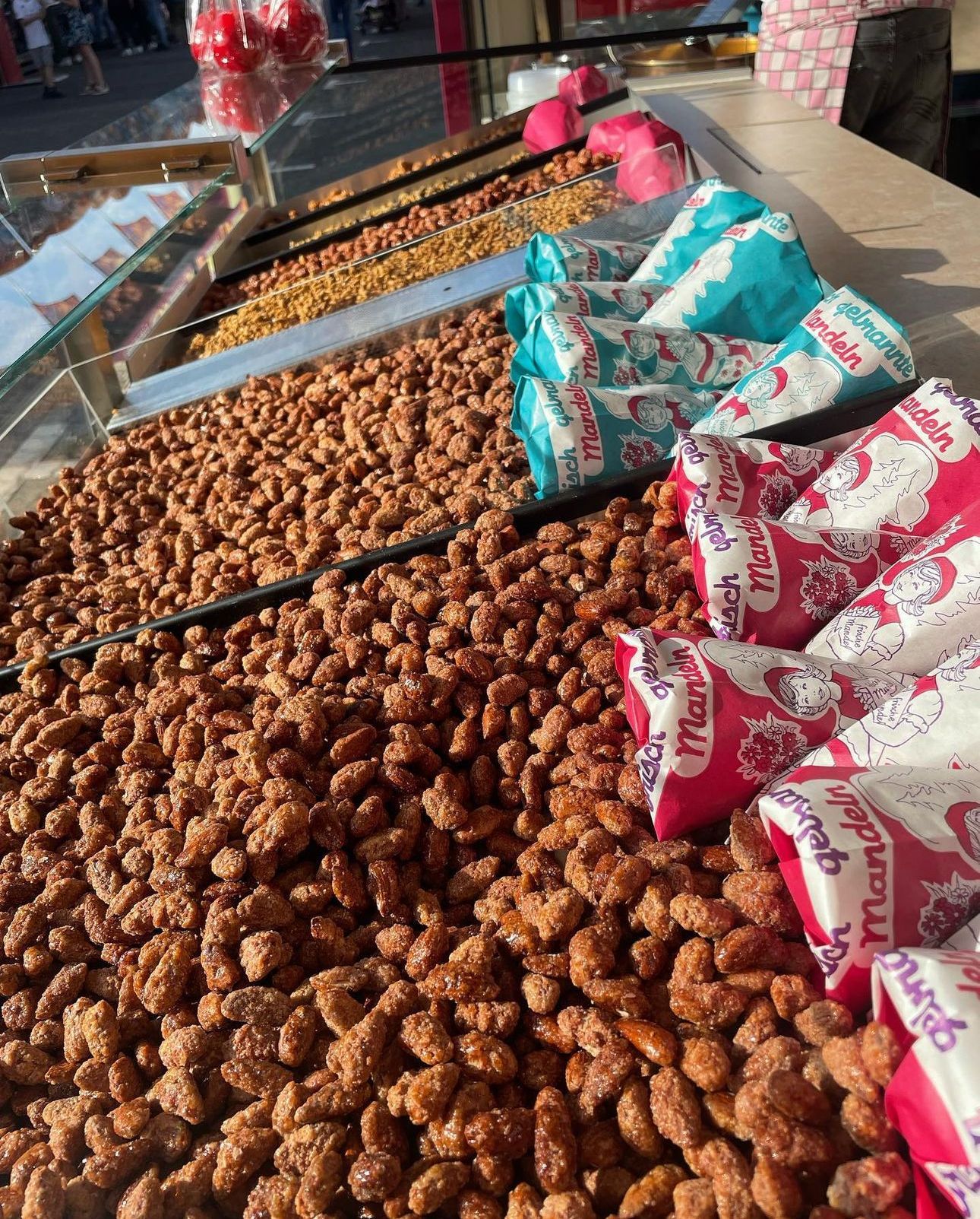 In diesem in frischen, liebevollen Design gestalteten Verkaufswagen bieten wir unseren Gästen Schokofrüchte mit echter belgischer Pralinenschokolade, verschiedenste gebrannte Nuss- & Mandelspezialitäten, Popcorn, Zuckerwatte und vieles mehr.